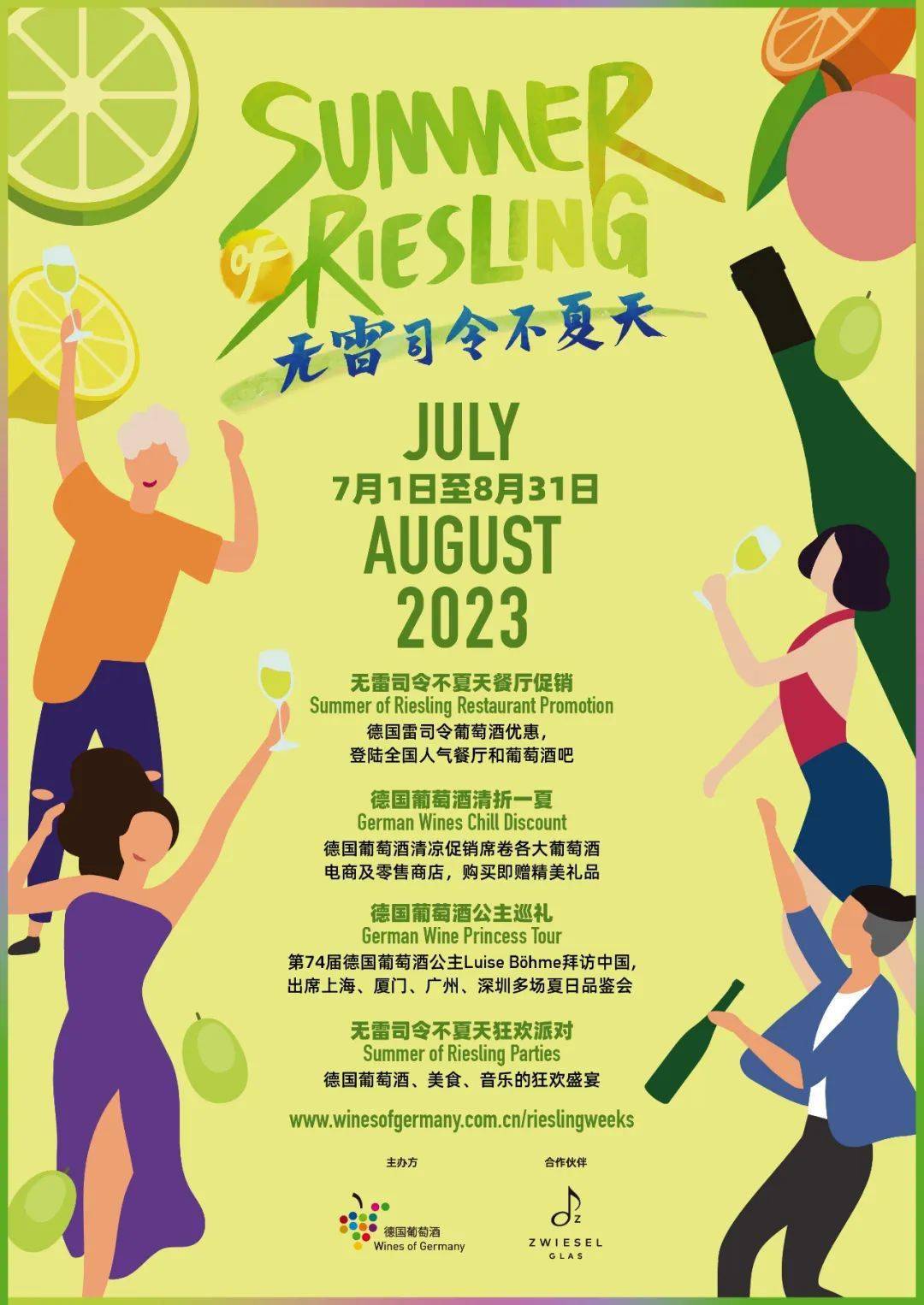 今年的 7月1日至8月31日,为普及葡萄酒消费场景,让更多年轻消费者体验到葡萄酒的轻松随意、易饮与美妙,由德国葡萄酒协会主办,一年一度的德国葡萄酒夏日推广活动“ 无雷司令不夏天Summer of Riesling”将再度登陆全国主要城市。