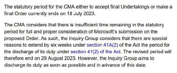 CMA最终裁决的新截止日期现在定为8月29日,尽管监管机构表示其“目标是在这一日期之前尽快履行职责”。