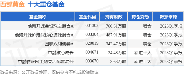 重仓西部黄金的前十大基金见下表: