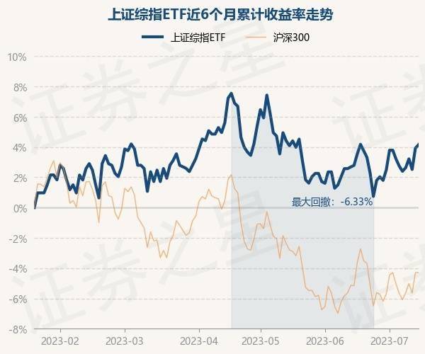 7月14日,上证综指ETF最新单位净值为0.89元,累计净值为1.653元,较前一交易日上涨0.23%。历史数据显示该基金近1个月上涨1.32%,近3个月下跌1.37%,近6个月上涨4.16%,近1年上涨2.39%。该基金近6个月的累计收益率走势如下图: