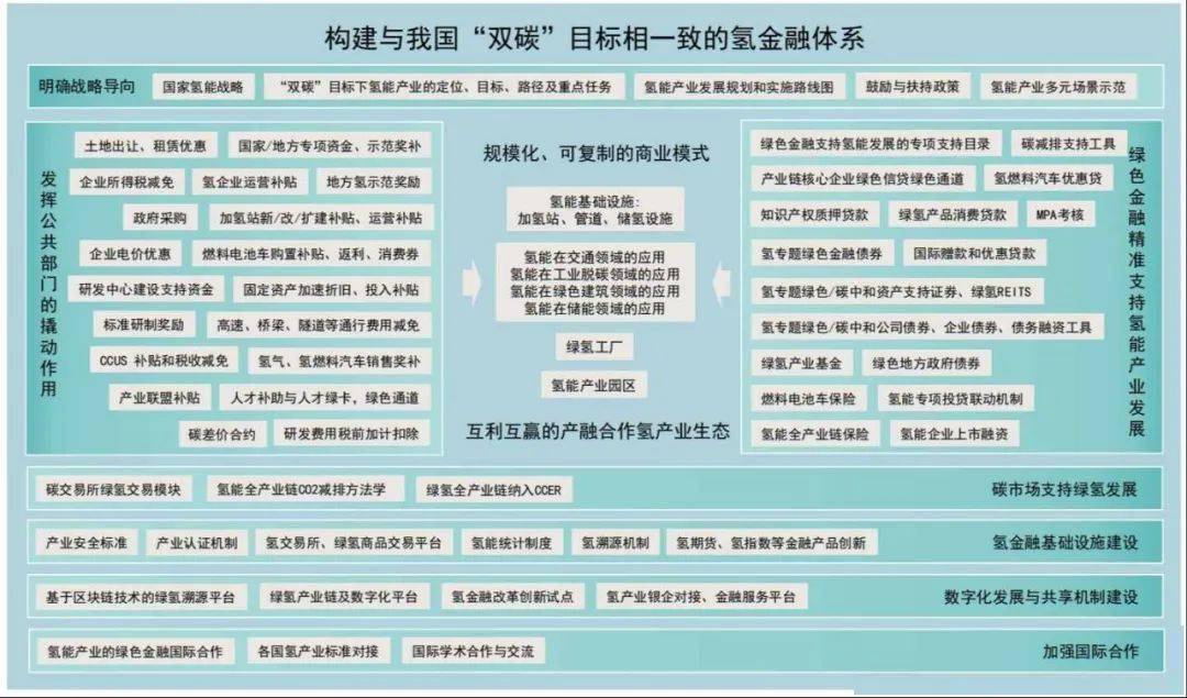 绿色金融对氢产业的支持有赖干认证机制、交易平台、统计与报告平台、溯源机制、价格形成机制等一系列氢金融基础设施的完善和发展。
