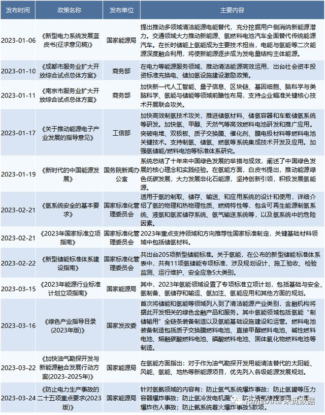 2023年一季度国家层面发布的氢能发展相关政策 图源:来觅数据
