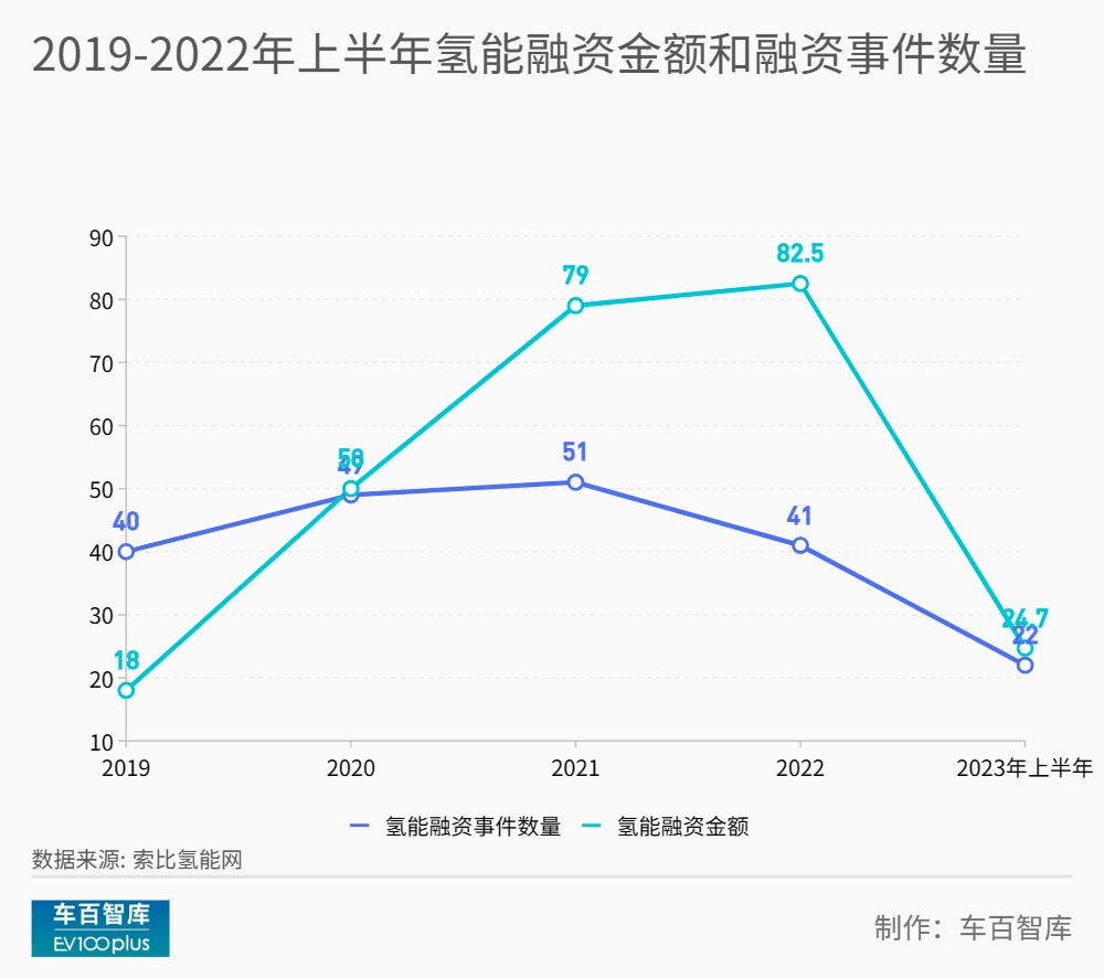 若从2023年的数据来看,氢能投融资并不格外亮眼。据索比氢能网的统计,2023年上半年,氢能赛道共有22笔融资事件,除去未公开融资金额的1笔,其余的21笔公开的融资金额总计为24.7亿元。这与往年相比,并没有大幅度增加。