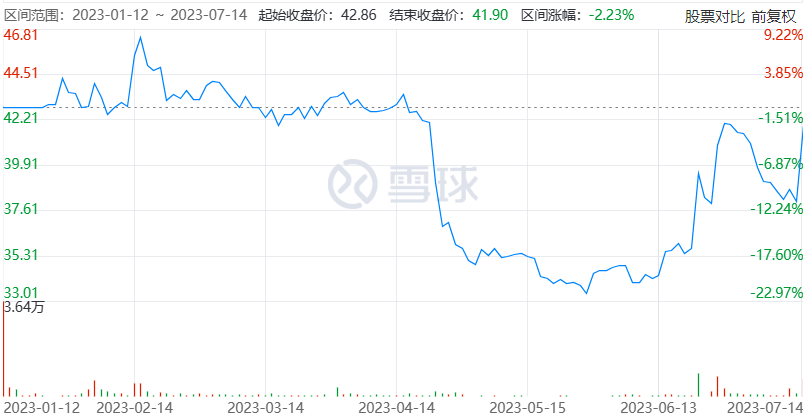 截至2023年7月14日上午11点,亿华通的股价为41.9港元,较发行价已下跌30%。