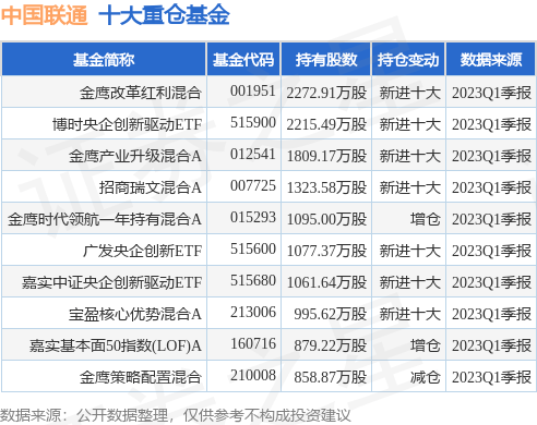 重仓中国联通的前十大公募基金请见下表:
