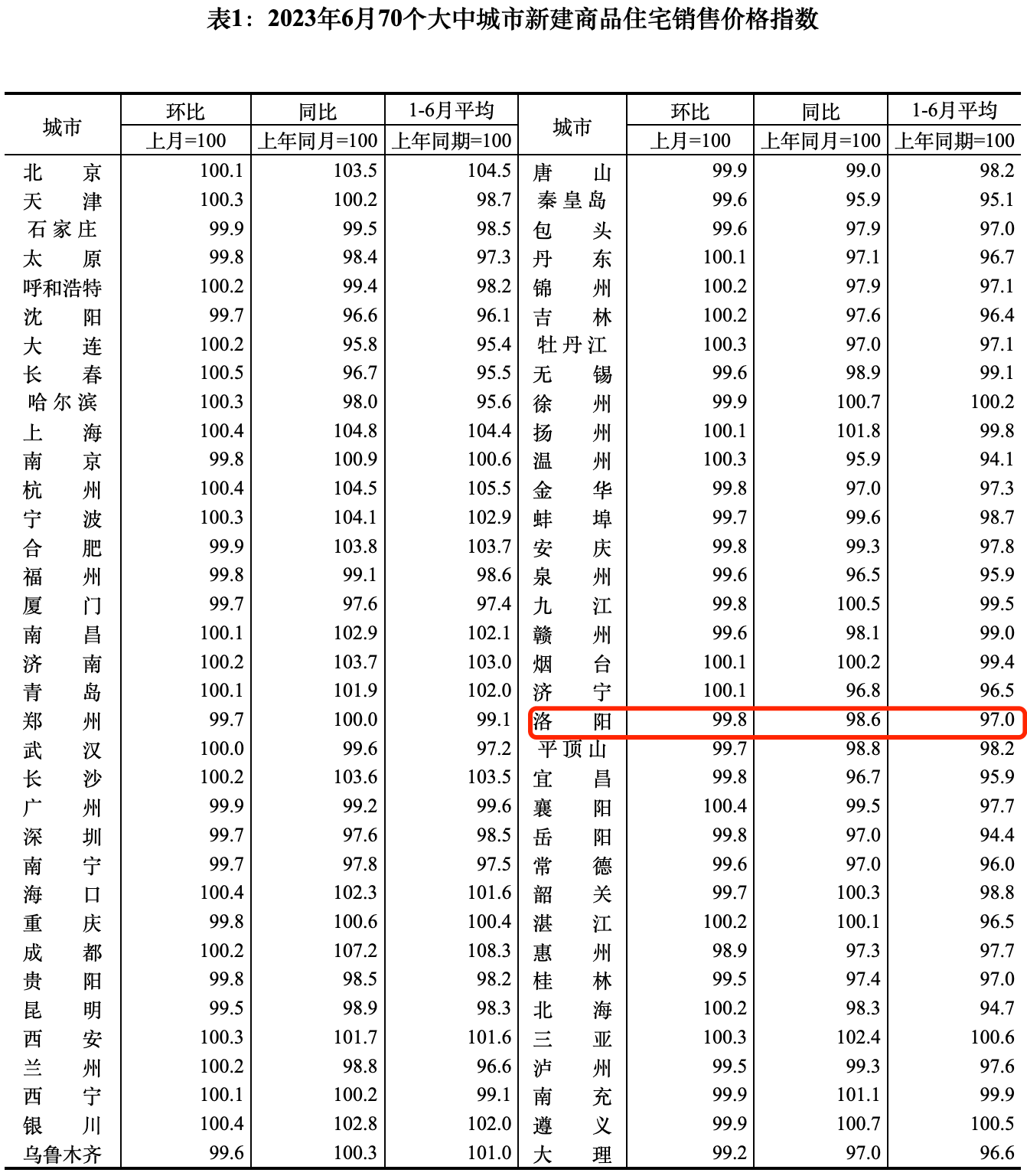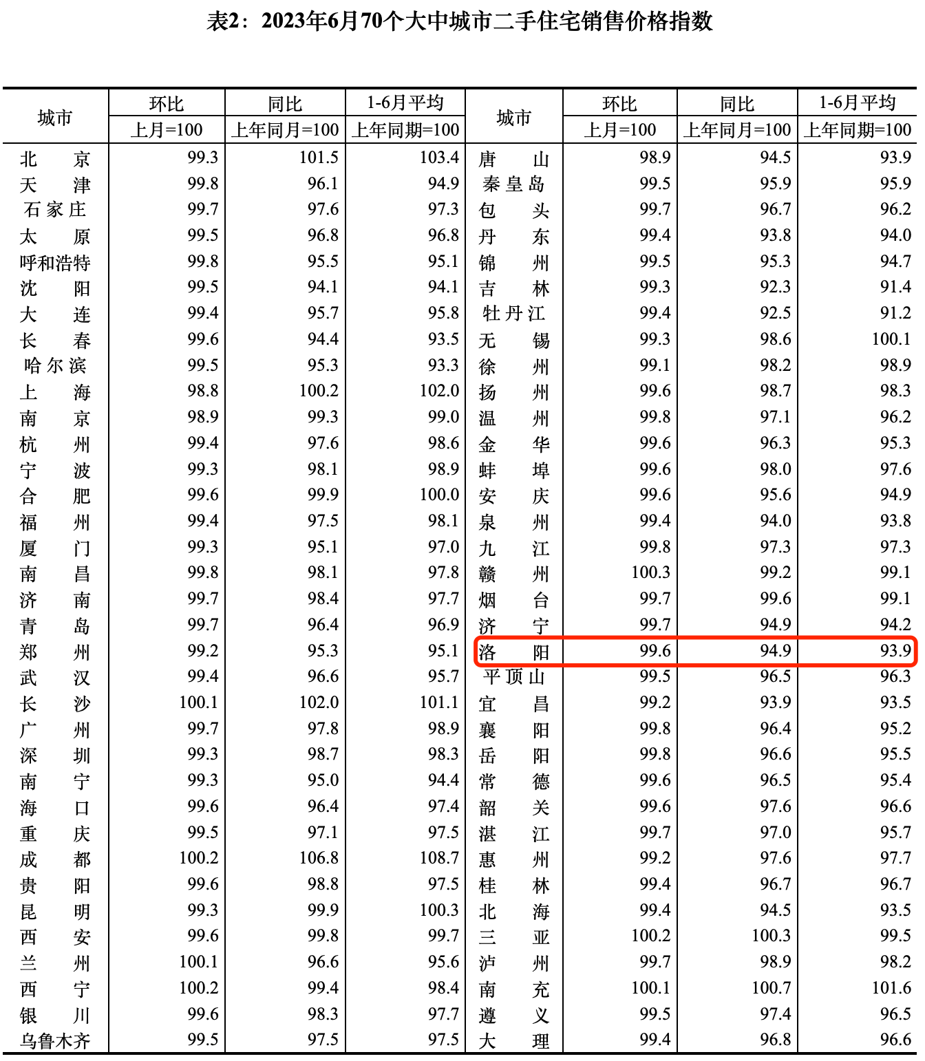 【大河财立方 记者 朱娟】 7月15日,国家统计局发布6月份70个大中城市商品住宅销售价格变动情况。其中,6月洛阳新房价格环比下跌0.2%,在连涨4个月后小幅下跌,同比下跌1.4%,跌幅与5月相同;二手房价格环比下跌0.4%,跌幅较5月收窄0.1个百分点,同比下跌5.1%,跌幅较5月收窄0.3个百分点。