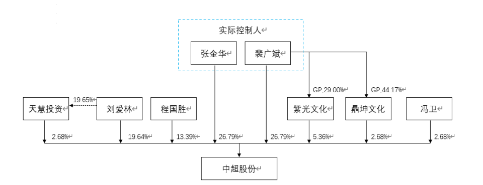裴广斌、张金华为发行人的控股股东、实际控制人。裴广斌直接持有发行人股份总数的26.79%,通过紫光文化间接控制发行人股份总数的5.36%,通过鼎坤文化间接控制发行人股份总数的2.68%,合计控制发行人股份总数的34.83%;张金华直接持有发行人股份总数的26.79%。裴广斌与张金华合计控制发行人股份总数的61.61%。