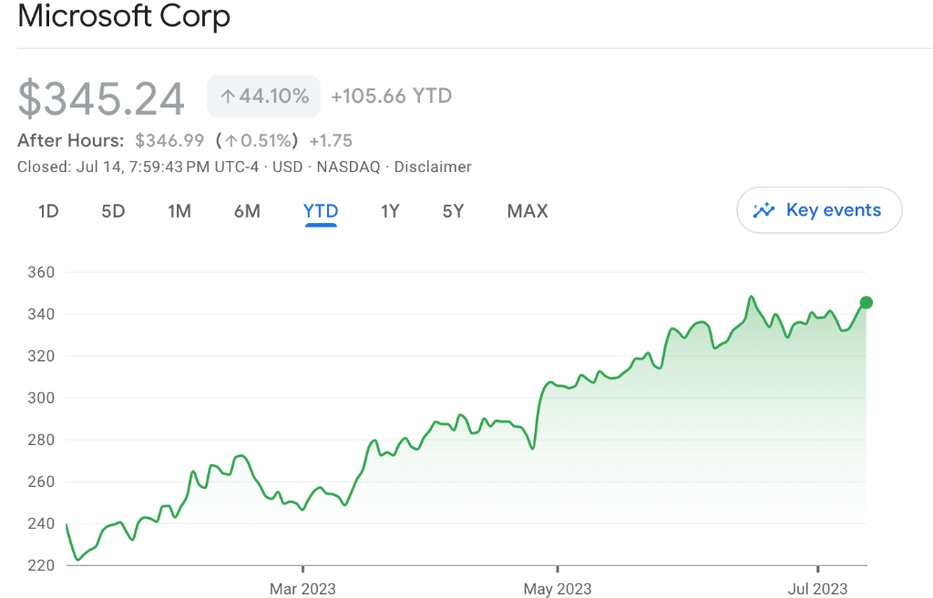 微软最终收涨近0.8%至345.24美元,连涨四日逼近6月15日的历史高位,今年以来微软也涨超44%。
