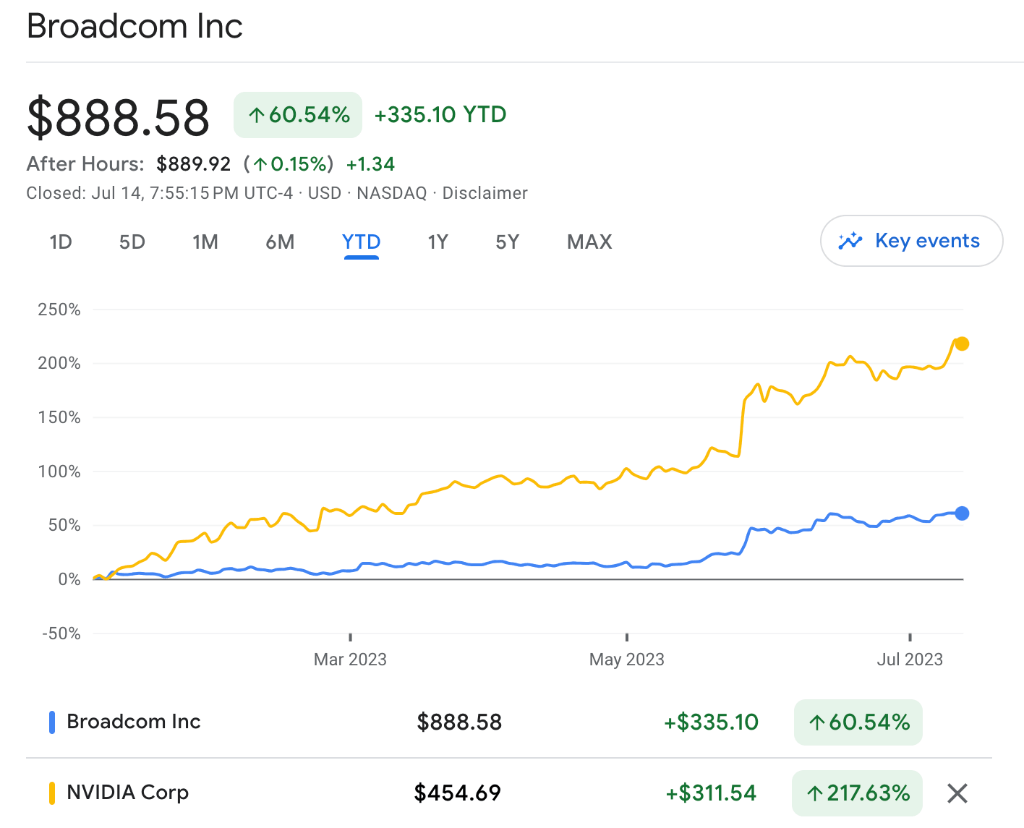 被称为下一个“英伟达”的博通公司(Broadcom)盘中也触及903.35美元的历史高位,今年以来博通已涨超60%。