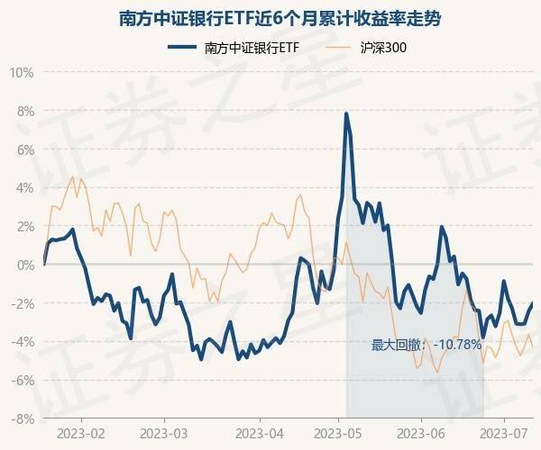7月12日,南方中证银行ETF最新单位净值为1.141元,累计净值为1.241元,较前一交易日上涨0.39%。历史数据显示该基金近1个月下跌2.19%,近3个月上涨1.76%,近6个月下跌2.04%,近1年下跌3.55%。该基金近6个月的累计收益率走势如下图: