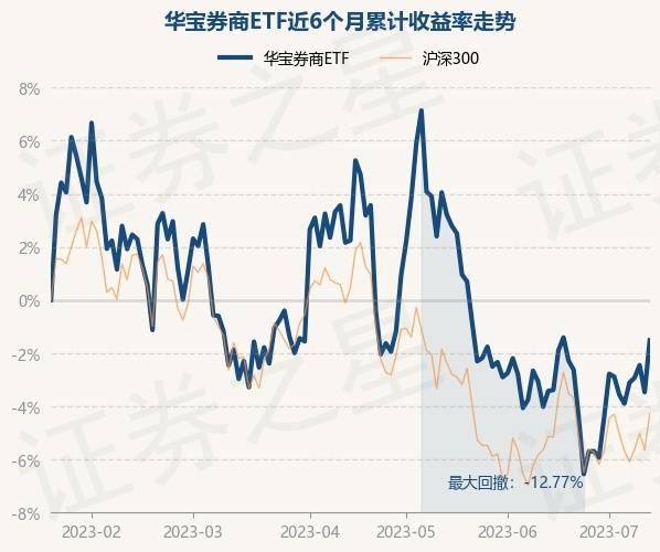 7月14日,华宝券商ETF最新单位净值为0.8642元,累计净值为0.8642元,较前一交易日下跌0.32%。历史数据显示该基金近1个月上涨1.6%,近3个月下跌4.01%,近6个月下跌1.84%,近1年下跌1.82%。该基金近6个月的累计收益率走势如下图: