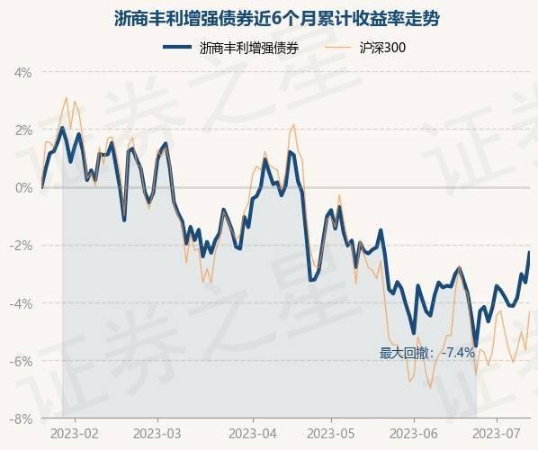 7月13日,浙商丰利增强债券最新单位净值为1.8055元,累计净值为1.8055元,较前一交易日上涨1.06%。历史数据显示该基金近1个月上涨1.19%,近3个月下跌1.98%,近6个月下跌2.3%,近1年下跌5.53%。该基金近6个月的累计收益率走势如下图: