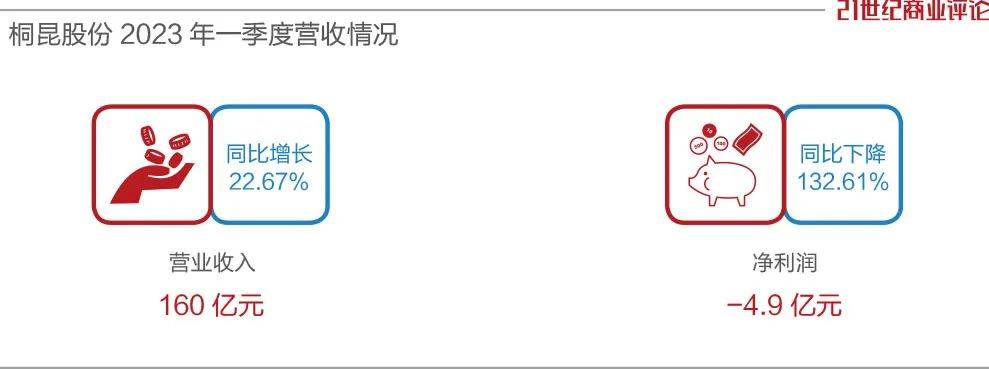 进入2023年,状况仍不理想。1-3月,营收约为160亿元,同比增长22.67%,净亏损4.9亿元。