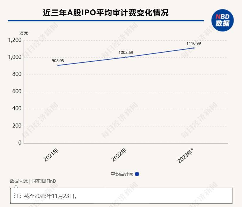 近两年A股IPO平均审计费用上涨幅度均超10%