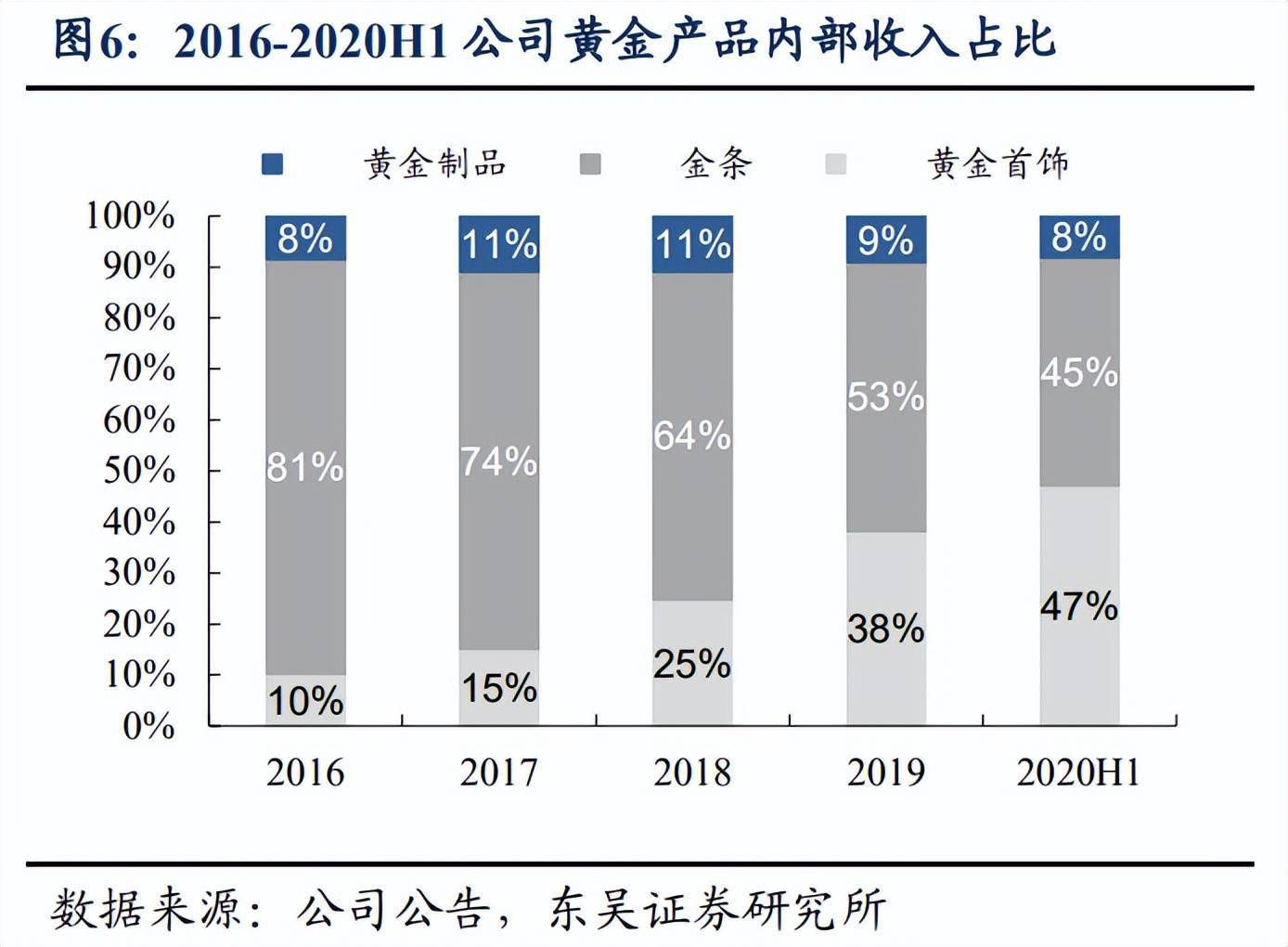 国内多数黄金珠宝品牌的黄金来源主要是从上海黄金交易所采购,或向商业银行租赁。比如中国黄金、菜百股份从上金所采购黄金的比例分别约为90%、70%。