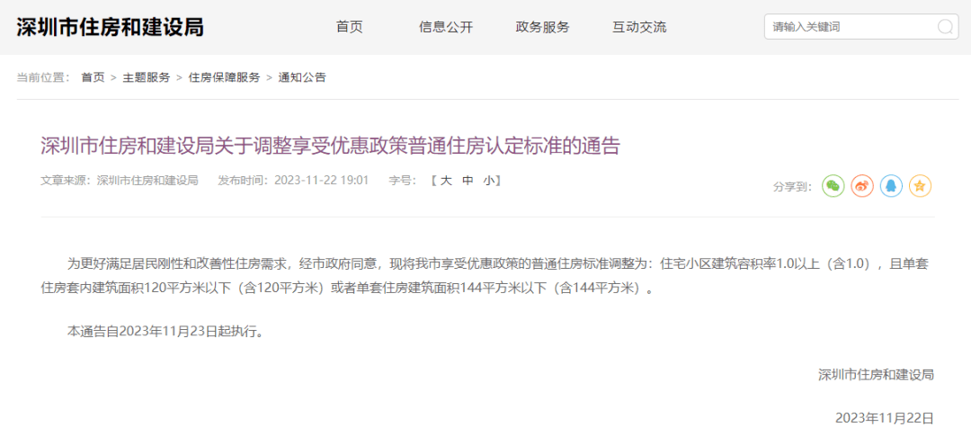 稳楼市持续发力。11月22日深圳又出两项“调整”:一是调整二套住房最低首付款比例,二套住房个人住房贷款最低首付款比例统一调整为40%;二是取消豪宅税750万元的标准,改为以面积计税,建筑面积144㎡以上住宅征收豪宅税。