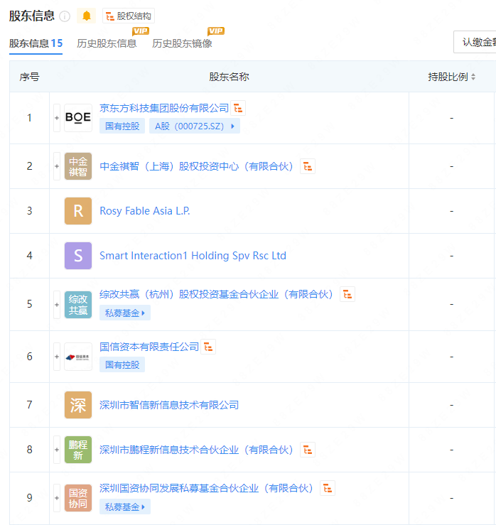 去年11 月,荣耀终端有限公司其股东列表中新增包括京东方科技集团股份有限公司、深圳市宝安区投资管理集团有限公司等在内的6位股东。目前荣耀共有15大股东,另外9家包括深圳市智信新信息技术有限公司、深圳市鹏程新信息技术合伙企业(有限合伙)、深圳国资协同发展私募基金合伙企业(有限合伙)、深圳市春芽联合科技合伙企业(有限合伙)等。