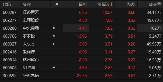 原标题:A股商贸零售板块表现强势 江苏舜天涨停