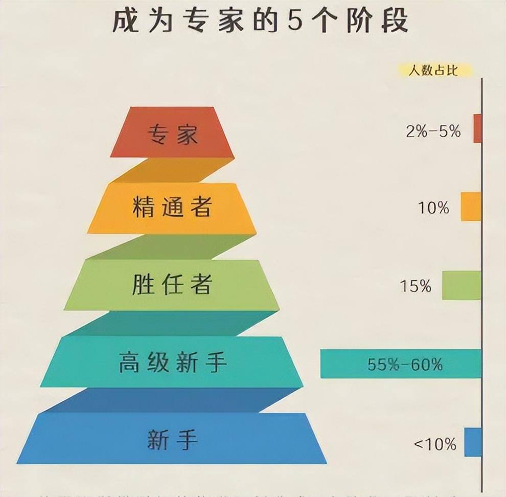 人们对一项专业技能的熟练程度,可以分为新手、高级新手、胜任者、精通者和专家。