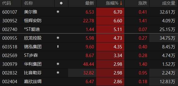 原标题:A股纺织服饰板块表现强势 *ST爱迪涨停