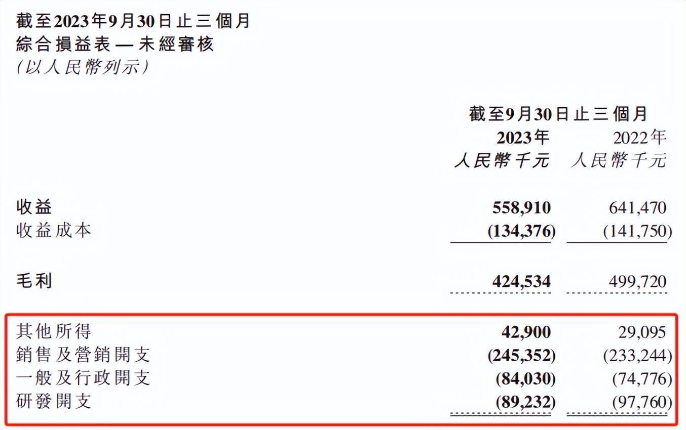 尽管,从局部来看,的各项支出有增有减,但汇总来看,2023年三季度支出项的总金额累计为4.18亿人民币,同比仅增加3%。销售、行政、研发及其他开支均与去年同期保持相同水平。