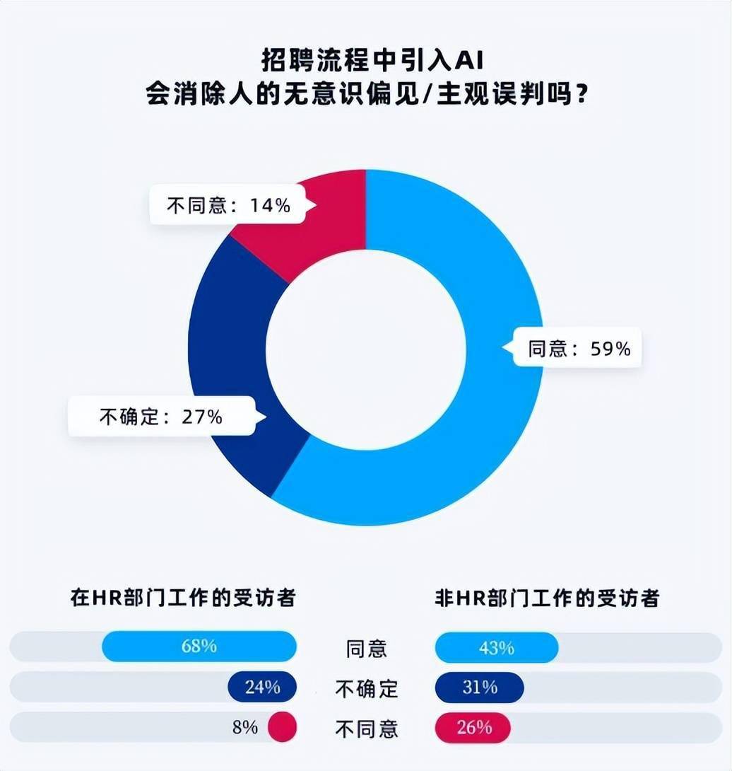 对于招聘行业与AI的结合,据红杉汇数据,67%的HR认为对招聘流程来说具备积极影响。而这67%的人中有44%的人认为AI将解放HR的时间,有41%的人认为AI在招聘过程中可以提供有价值的见解。也有大部分受访者认为,在招聘过程中使用AI将消除无意识偏见或主观误判。
