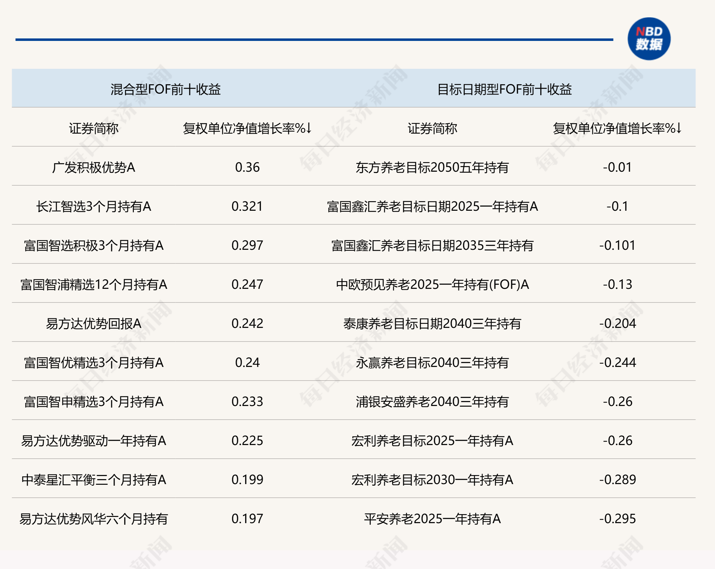 此外,受到债市震荡的影响,债券型FOF基金在上周也出现明显的回撤,部分FOF基金单周净值回撤超过0.3%。当然,混合型FOF依旧稳健,但涨幅相较此前数周有所收窄。