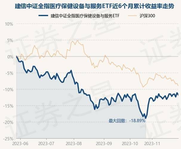 证券之星消息,11月29日,建信中证全指医疗保健设备与服务ETF最新单位净值为0.5221元,累计净值为0.5221元,较前一交易日下跌0.7%。历史数据显示该基金近1个月上涨3.61%,近3个月上涨1.73%,近6个月下跌11.7%,近1年下跌16.93%。该基金近6个月的累计收益率走势如下图: