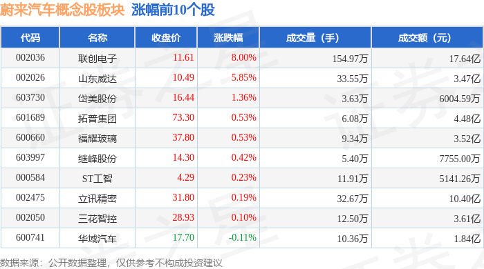 北向资金方面,当日蔚来汽车概念股板块北向资金持股市值为672.56亿元,减持2.6亿元。其中增持最多的是立讯精密,增持了0.98亿元。减持持最多的是江淮汽车,减持了2.92亿元。蔚来汽车概念股板块北向资金持股变动明细见下表: