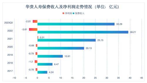 然而,尽管保险业务收入均实现翻倍增长,但华贵人寿净利润持续滑坡的现状却越来越严重。成立至今,华贵人寿在六余年的发展历程中,除2021年短暂盈利外,其余年份均处于亏损。2017年至2022年,其净利润分别为-0.78亿元、-1.2亿元、-0.79亿元、-0.68亿元、0.31亿元和-3.61亿元。也就是说,算上2021年的微盈利,华贵人寿成立至今已经累亏约8.76亿元。