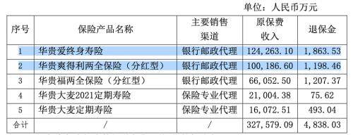 拆分产品线来看,2022年华贵人寿旗下保费收入前五的产品分别为三款寿险和两款分红险,其中“华贵爱终身寿险”和“华贵爽得利两全保险(分红型)”分别实现保费收入12.43亿元、10.02亿元;分别占总保费收入的31.7%和25.55%,这也与华贵人寿保费收入构成相一致。
