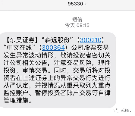 新腕儿 今日报道股市是门玄学,买入卖出的时间节点,因人而异。短剧风口席卷下的二级市场,正倡行着风浪越大鱼越贵的投资玄学。就算股价无来由的上涨下跌,总有人相信能在这家公司的荫蔽下,走上人生巅峰。他们是相信的。就比如中文在线,证券公司一大早给投资者发股票交易存在异常波动,提醒审慎交易:交易所将对投资者在上述证券商的异常交易行为进行从严认定,并视情况从中采取列为重点监管账户、暂停投资者账户交易等自律管理措施。