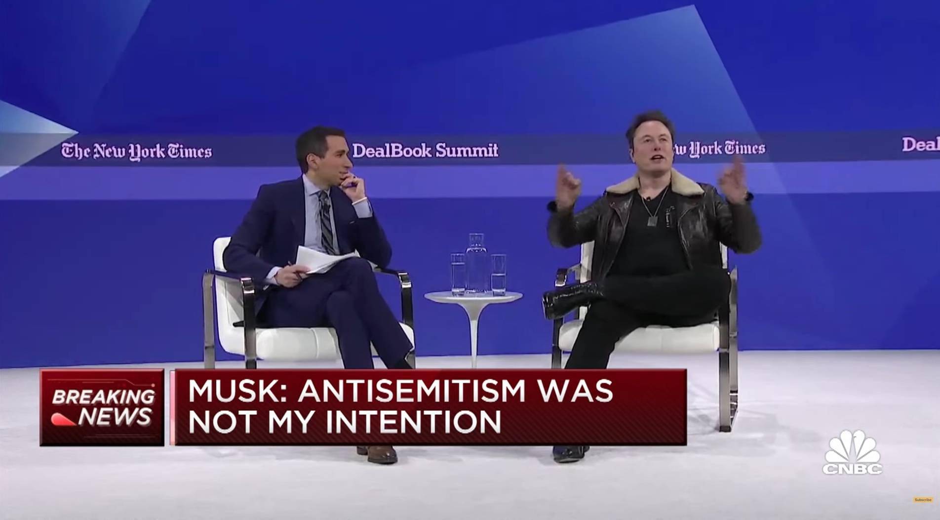 当时迪士尼首席执行官鲍勃·艾格(Bob Iger)也在现场,马斯克在发表上述评论后一度停顿了一下,说“嗨,鲍勃”。