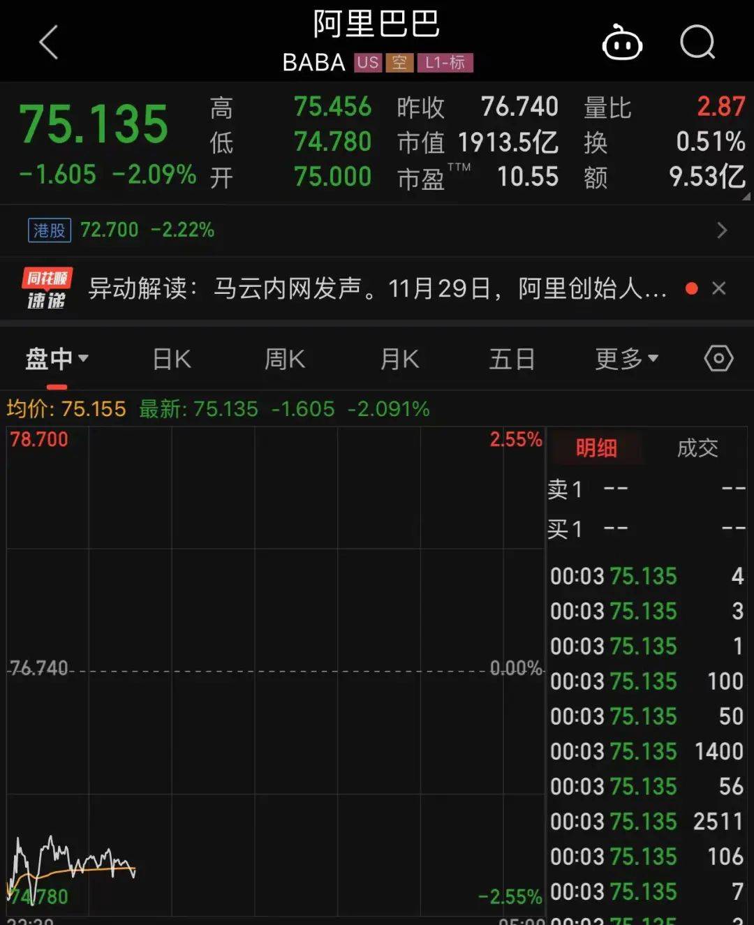 随后,拼多多一度涨超4.0%,盘中市值达到1924亿美元(约1.371万亿元人民币),阿里巴巴1918亿美元(约1.367万亿元人民币)。