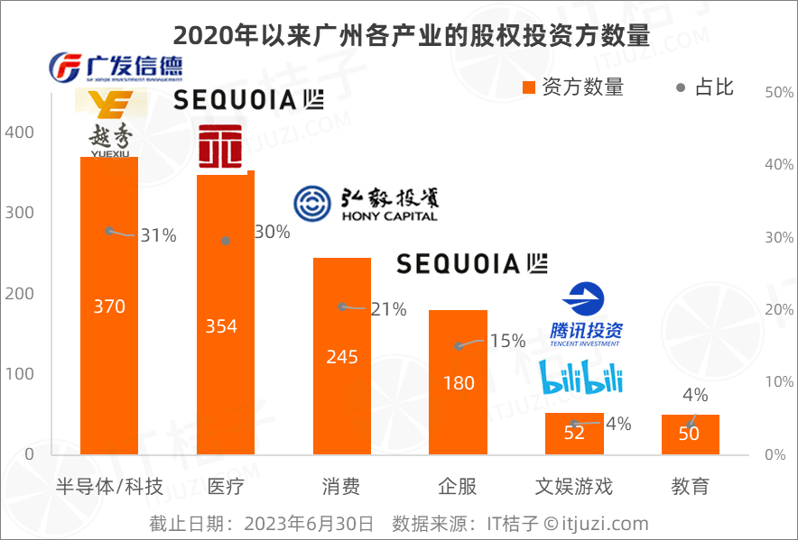 自2020年以来,来广州参与出手股权投资的机构有1195家。其中,有31%的资方选择支持半导体和先进制造行业,有30%的资方投向了医疗产业。