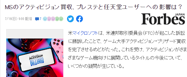 近期拖延甚久的微软收购动视暴雪案即将告终,动视暴雪很有可能成为微软旗下重要一员,日前福布斯日本分析了案件,谈到了对世界另两家游戏巨头索尼与任天堂各有影响,真的是几家欢喜几家忧。