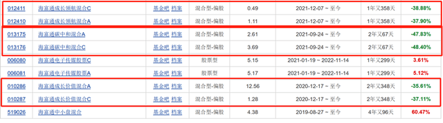 天天基金网数据显示,截至2023年11月29日,2023年年内,海富通成长价值混合跌幅超过7%,海富通碳中和混合跌幅超过37%,海富通成长领航混合跌幅超过28%。