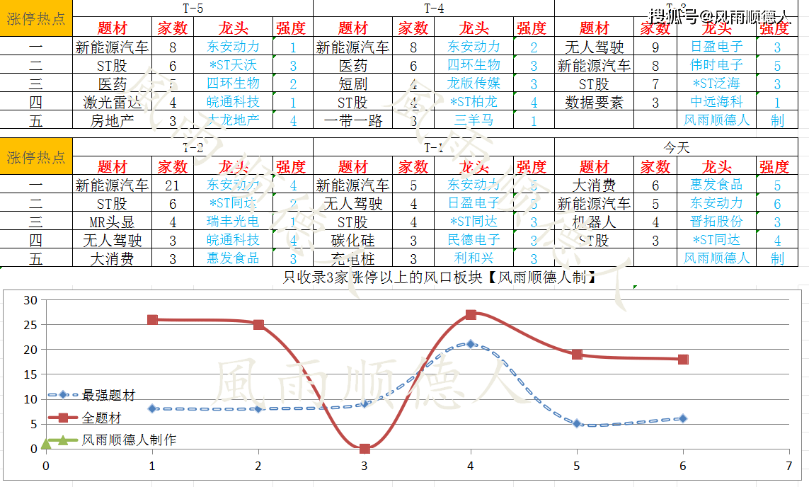 3、热点纵览方面,前5风口涨停数在3-6家,主线风口:机器人。市场核心龙头是东安动力,成绩6个涨停板,概念新能源汽车。