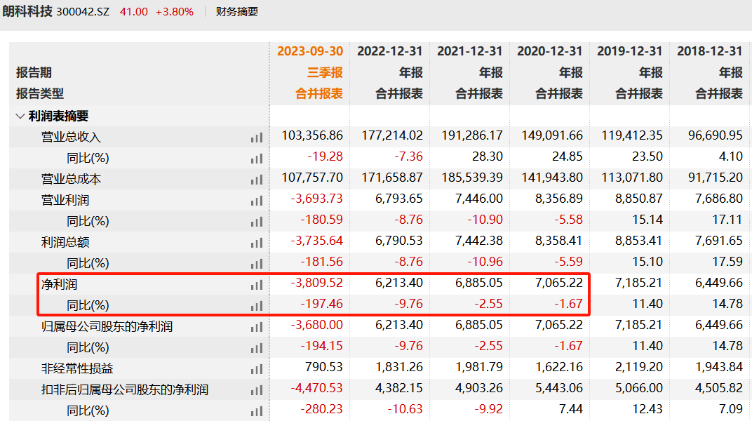 2023年1-9月,朗科科技前三季度营收约10.34亿元,同比减少19.28%;净利润亏损约3809.52万元,同比减少197.46%。今年上半年,朗科科技已经亏损2061万,是2010年上市以来首次亏损。公司解释为:需求疲软、存储市场价格呈下降趋势、以及房屋租赁收入和专利收入同比下降。