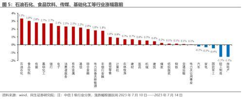 行业方面,本周石油石化、食品饮料、传媒、基础化工等行业涨幅靠前。