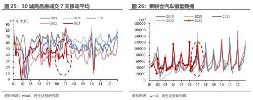 30城商品房销售7日移动平均值录得27.08万平方米,相较上周减少3.27万平方米,低于2022年同期;上周乘联会汽车当周日均销量录得3.7万辆,低于去年同期。