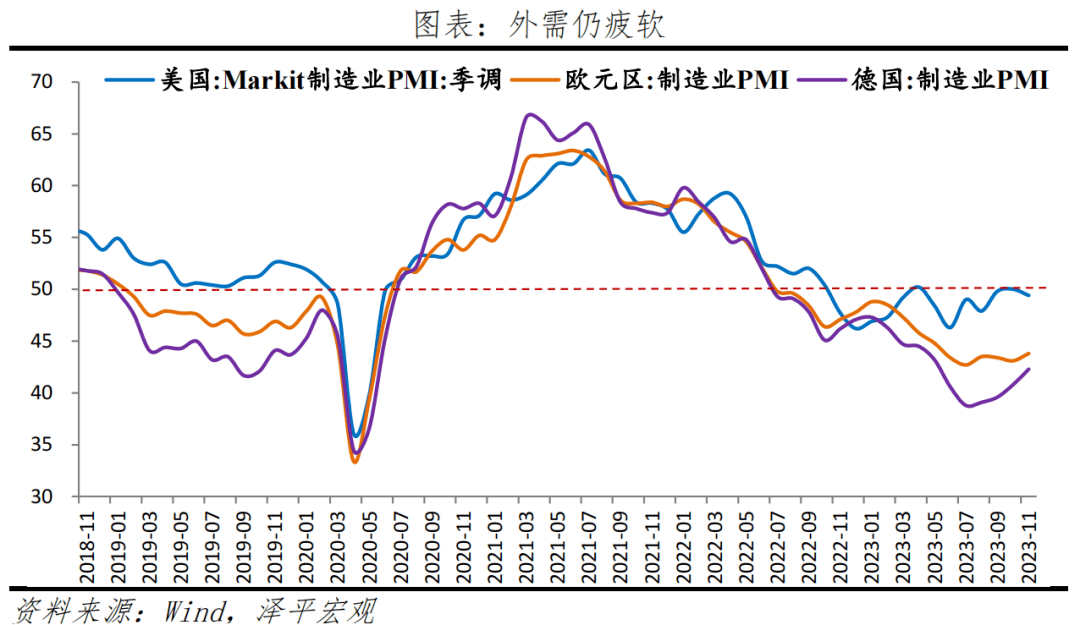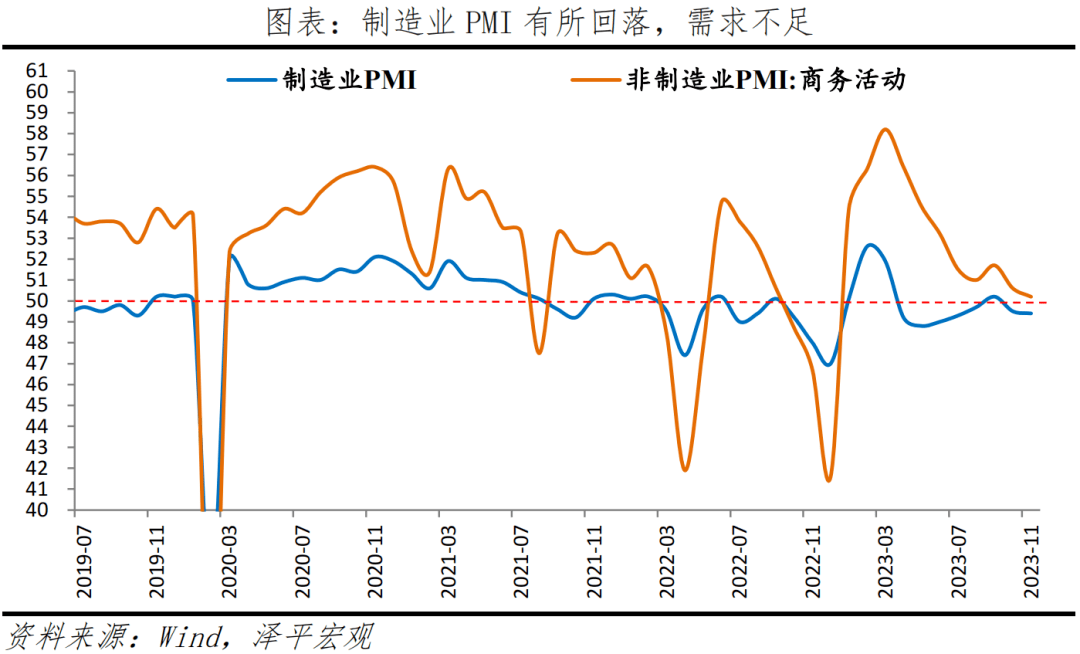 11月制造业PMI为49.4%,低于上月0.1个百分点,反映产需恢复基础不牢,需求不足是主要问题。