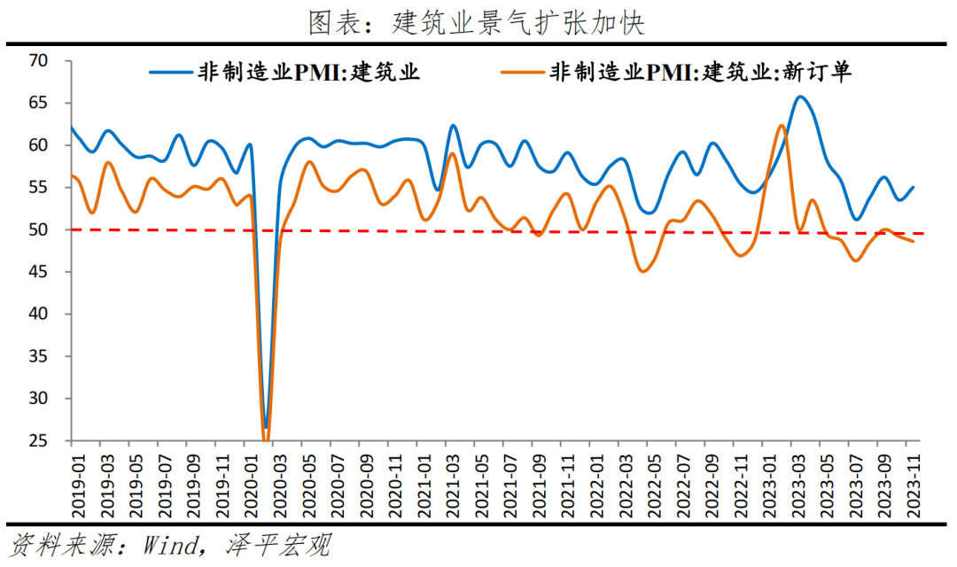 第四,建筑业景气有所回升,黑色系商品价格略有上涨。近期新增国债、三大工程建设政策落地,11月建筑业商务活动指数为55.0%,高于上月1.5个百分点。11月南华工业品价格月均环比上涨1.0%。
