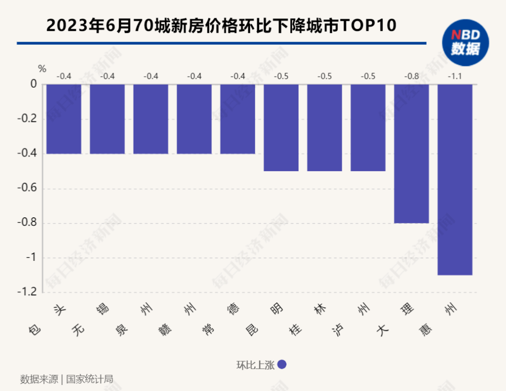 二手住宅方面,6月份价格同比上涨城市仅6个,较5月再减少3个;环比上涨城市仅有7个。