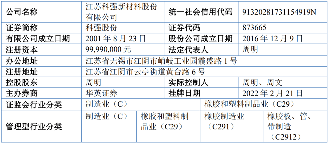 科强股份主要从事高性能特种橡胶制品的研发、生产和销售,是一家具有自主研发和创新能力的高新技术企业。公司不断开发和创新,形成了多种产品的特有配方,自主研制并投入使用了多款工装设备,为提高公司产品品质提供了技术支撑,为公司开发新产品和拓展新的应用市场提供了技术储备。