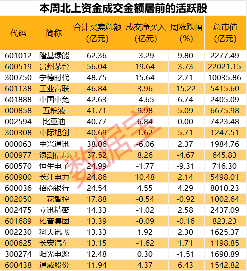 北上资金一周净流入198.44亿元。