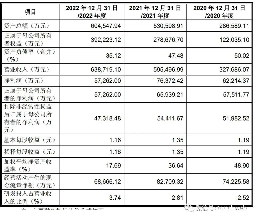招股书显示,嘉立创2020年、2021年、2022年营收分别为32.77亿元、59.55亿元、63.87亿元;净利分别为6.22亿元、7.64亿元、5.73亿元;扣非后净利分别为5.2亿元、5.44亿元、4.73亿元。