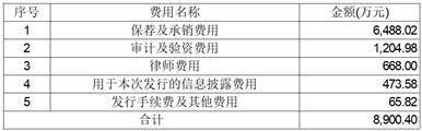 注:1、以上发行费用均不含增值税,如合计数与各分项数值直接相加之和在尾数上存在差异,均系四舍五入造成;