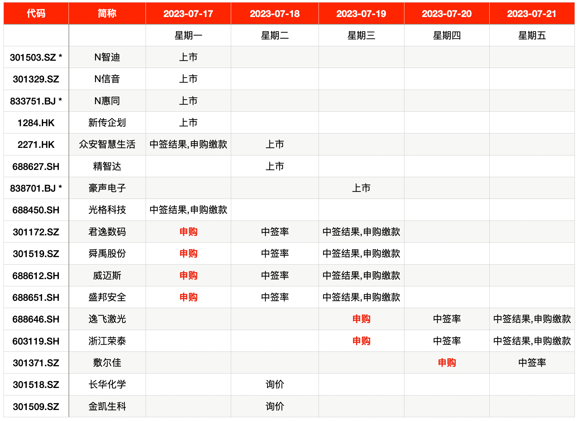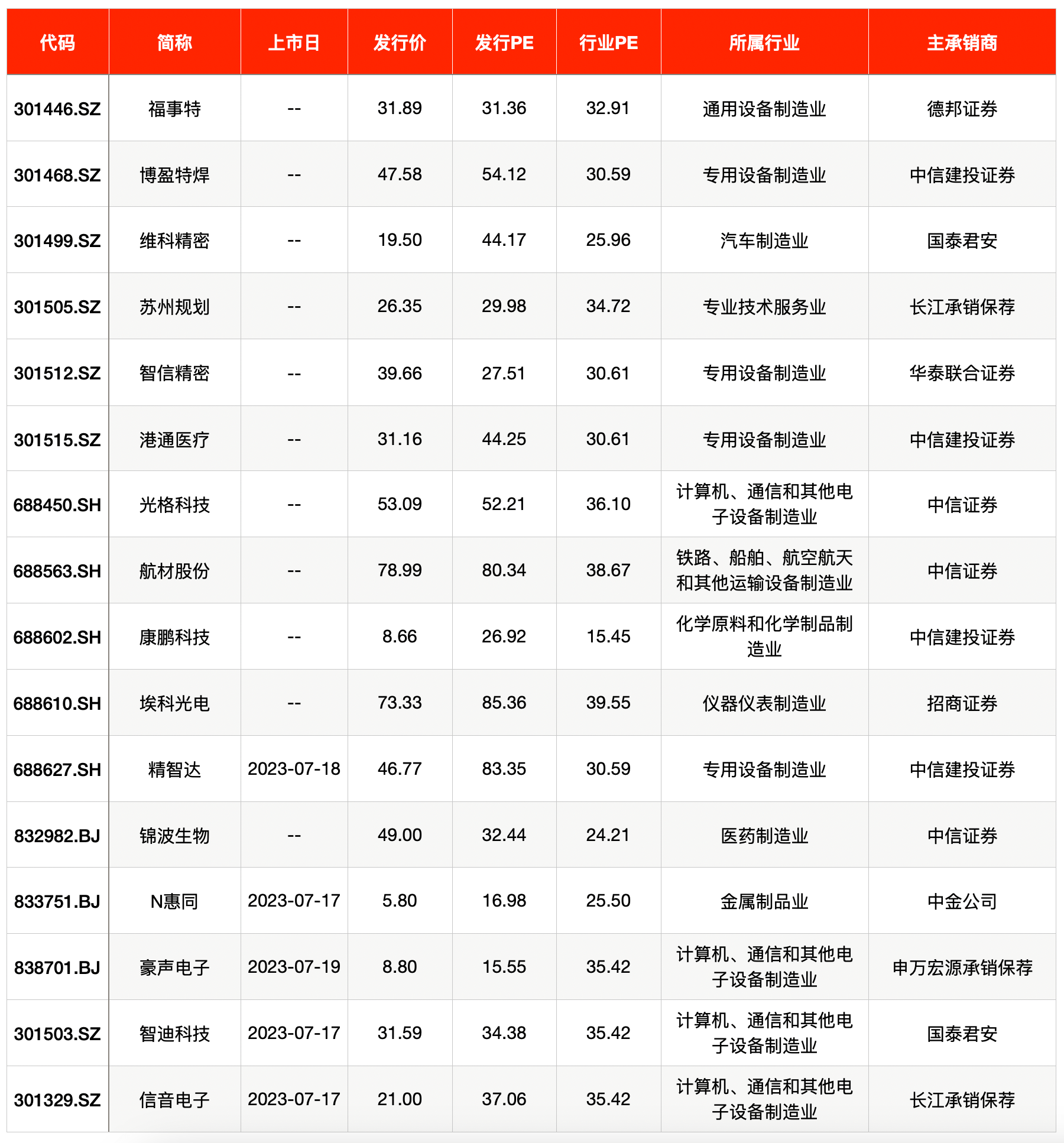 其中信音电子(中国)股份有限公司(简称“信音电子”,301329.SZ)、湖南惠同新材料股份有限公司(简称“惠同新材”,833751.BJ)、珠海市智迪科技股份有限公司(简称“智迪科技”,301503.SZ)将于周一(7月17日)上市。