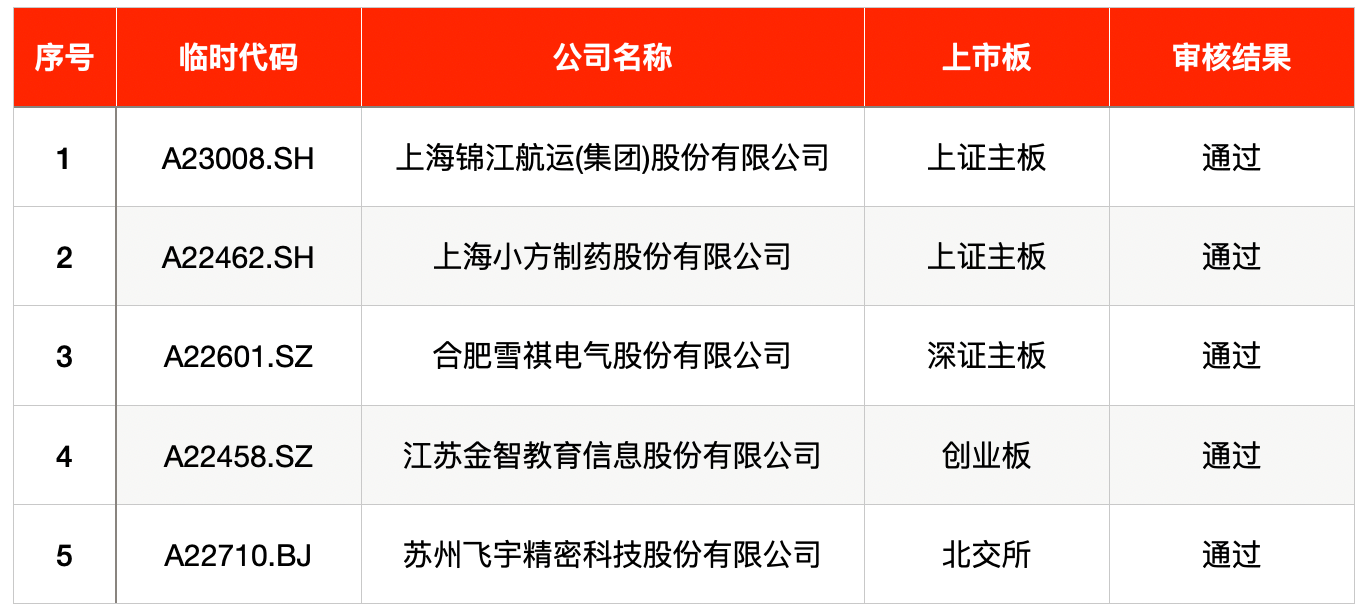 发审委审核方面,上周共有5家企业首发过会,均获得通过。